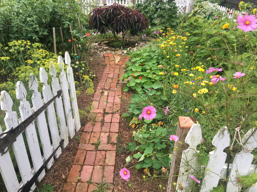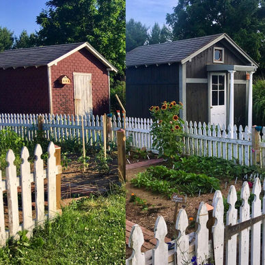 The property came with a sweet but run-down chicken coop that Ward rehabbed and covered in board and batten siding with a fresh coat of paint. The picket garden fence was reclaimed from a previous neighbor who was throwing it out. There have been successes and failures but the (organic) kitchen garden has yielded hundreds of pounds of produce and flowers year-round since 2015.
